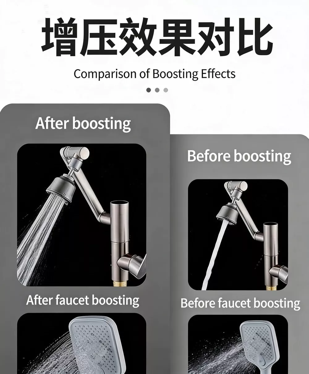 Zwiększanie ciśnienia głowicy prysznicowej: Zwiększa siłę wyjściową wody prysznicowej, rozwiązuje problemy słabego przepływu wody i wahań temperatury wody, znacznie optymalizując doznania pod prysznicem.