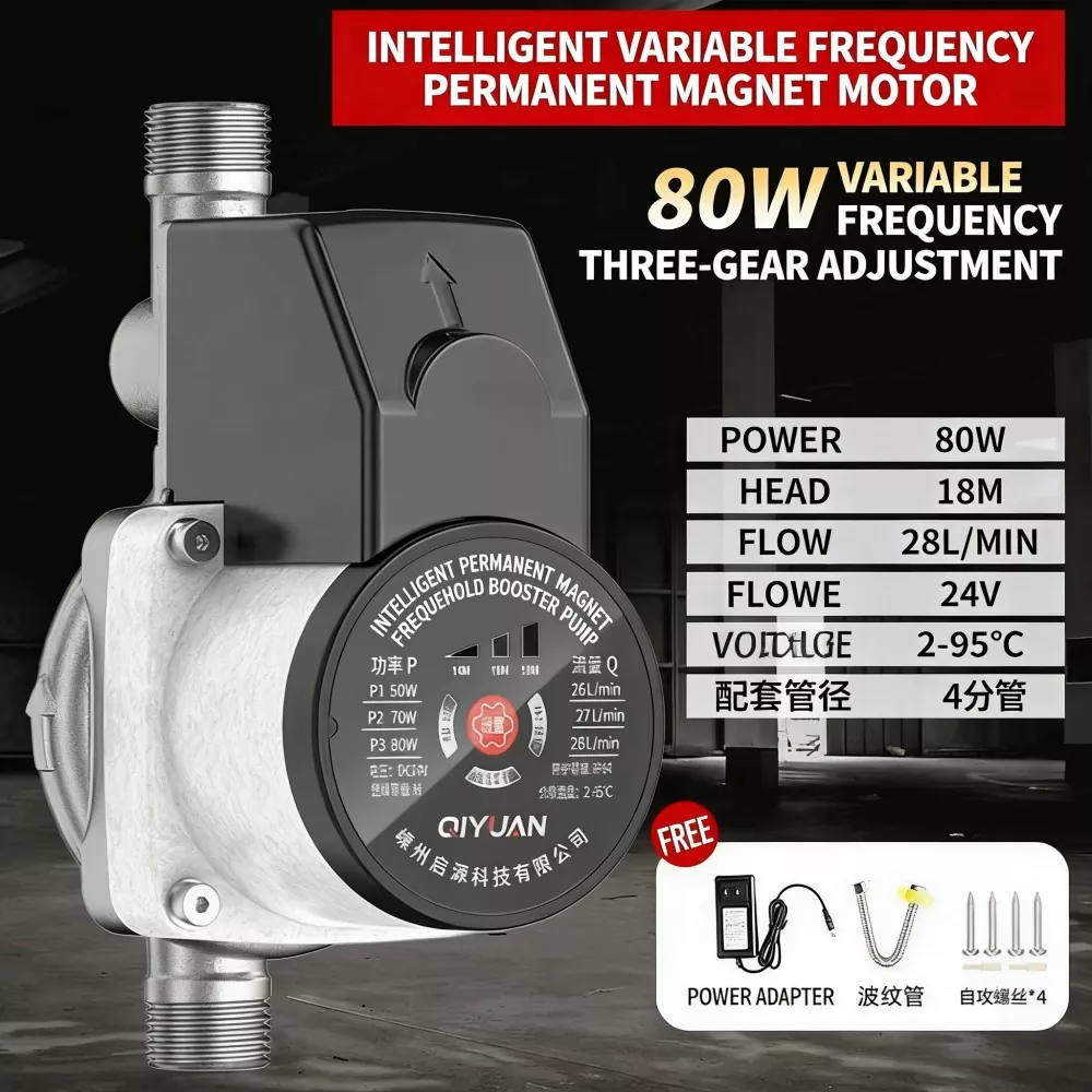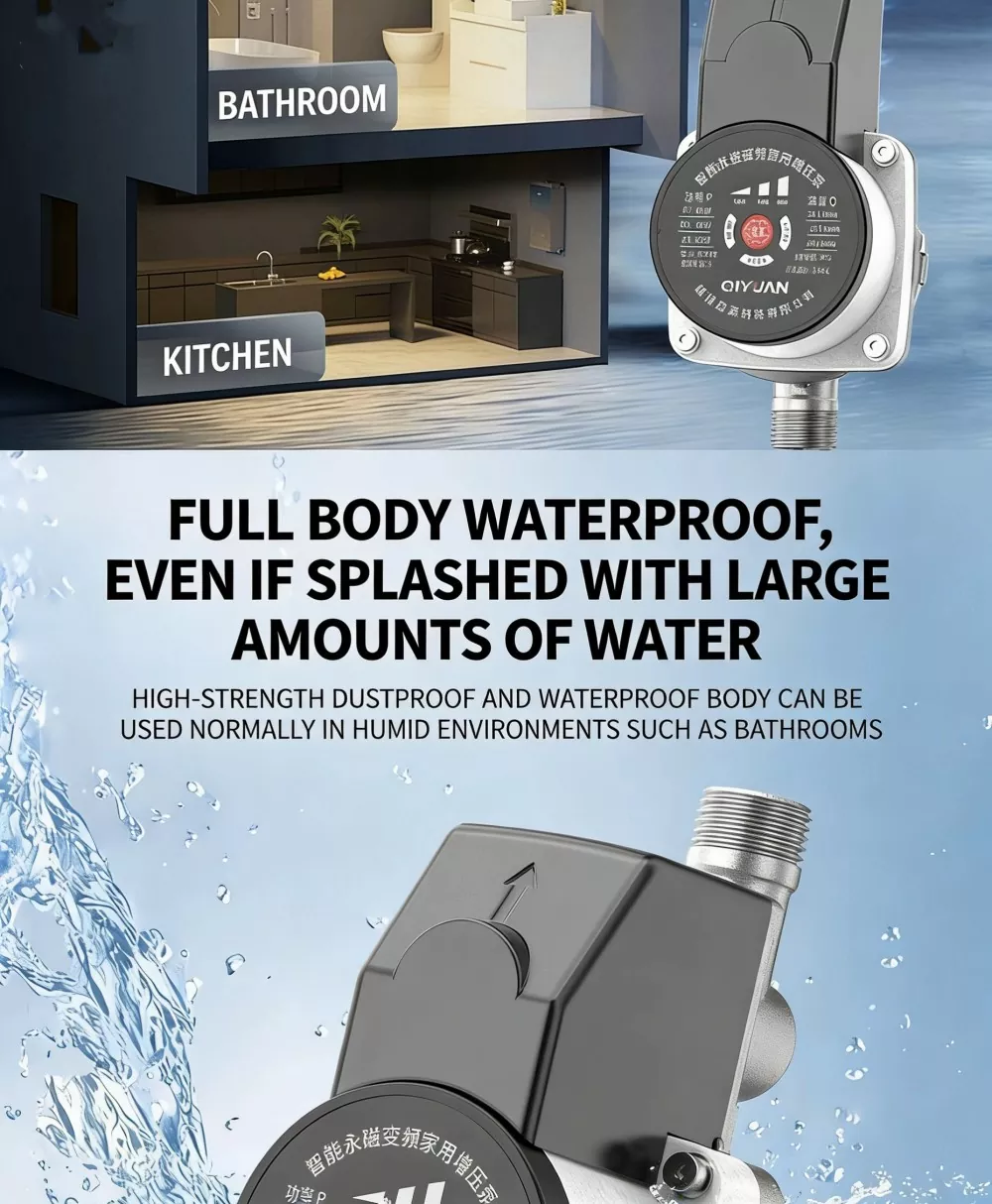 Inteligentna, cicha pompa wspomagająca o zmiennej częstotliwości z magnesem trwałym, wyposażona w profesjonalną technologię zmiennej częstotliwości z magnesem trwałym, zapewnia stabilne, wydajne i ciche rozwiązanie do podnoszenia ciśnienia wody w gospodarstwie domowym, kompleksowo rozwiązując różne problemy związane z niewystarczającym ciśnieniem wody w gospodarstwie domowym.