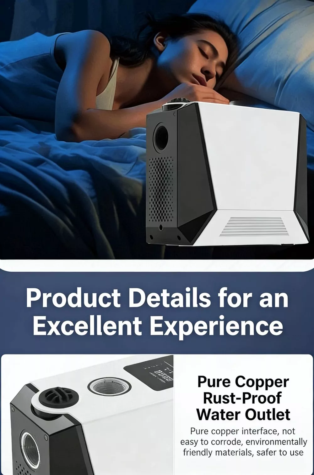 Zaawansowana cicha konstrukcja utrzymuje poziom hałasu podczas pracy poniżej 40 decybeli, co odpowiada poziomowi hałasu w bibliotece. Nie zakłóca codziennego życia i zapewnia ciche korzystanie z wody w nocy dla większego komfortu.