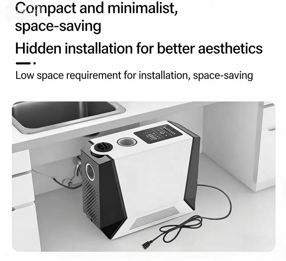 Kompaktowa, stylowa konstrukcja oszczędza miejsce na instalację. Wlot i wylot o dużej średnicy 1,5 cala umożliwiają wysoki przepływ i łatwe podłączenie. Możliwość szybkiego samodzielnego montażu lub szybkiego, profesjonalnego montażu na miejscu.