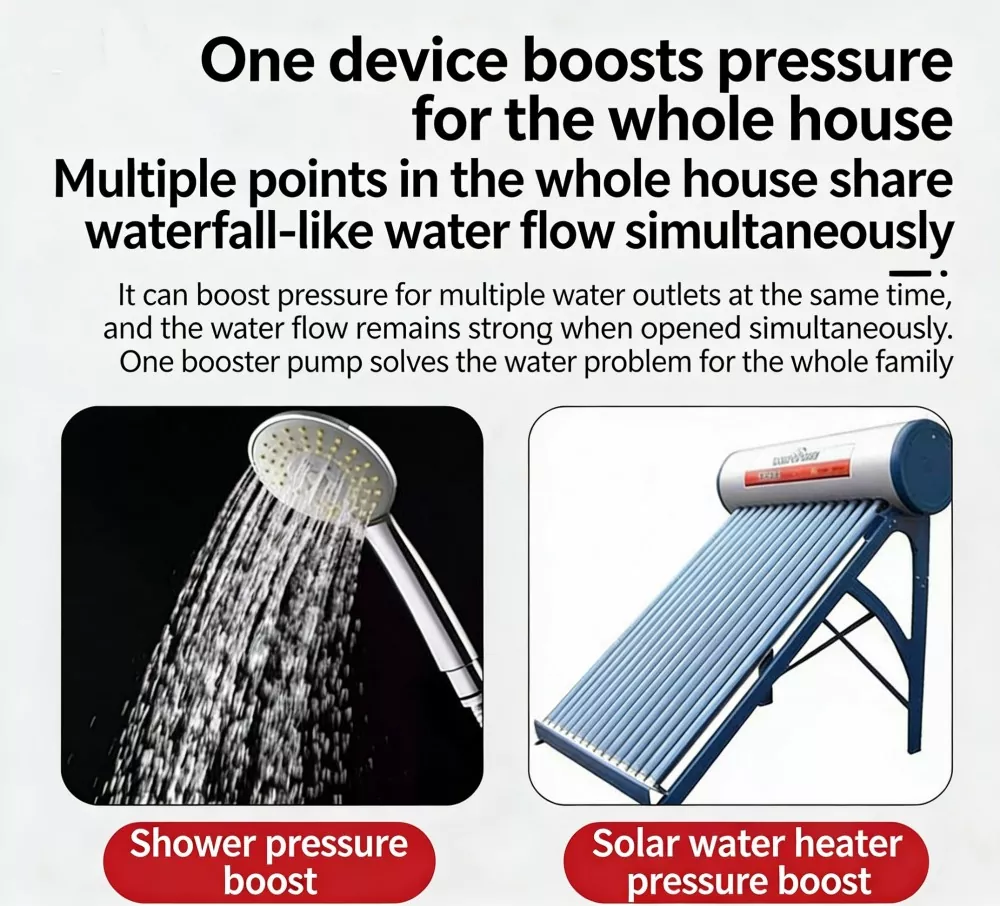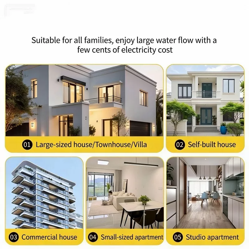 Duże mieszkania: napraw niskie ciśnienie wody na wyższych piętrach, zapewnij stabilne zaopatrzenie w wodę dla pryszniców i kuchni.