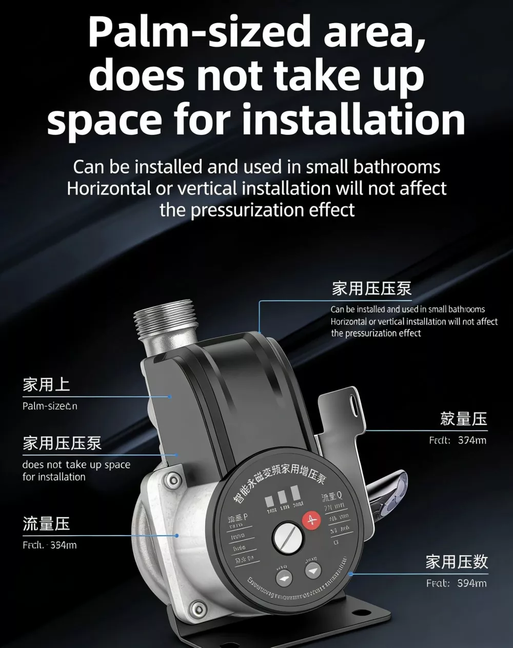 Mała inteligentna pompa wspomagająca to wysokowydajne, inteligentne urządzenie do podnoszenia ciśnienia wody w gospodarstwie domowym, zaprojektowane specjalnie, aby rozwiązać problemy związane z niewystarczającym ciśnieniem wody z kranu w codziennym użytkowaniu rodzinnym. Jego podstawowe zalety są następujące: