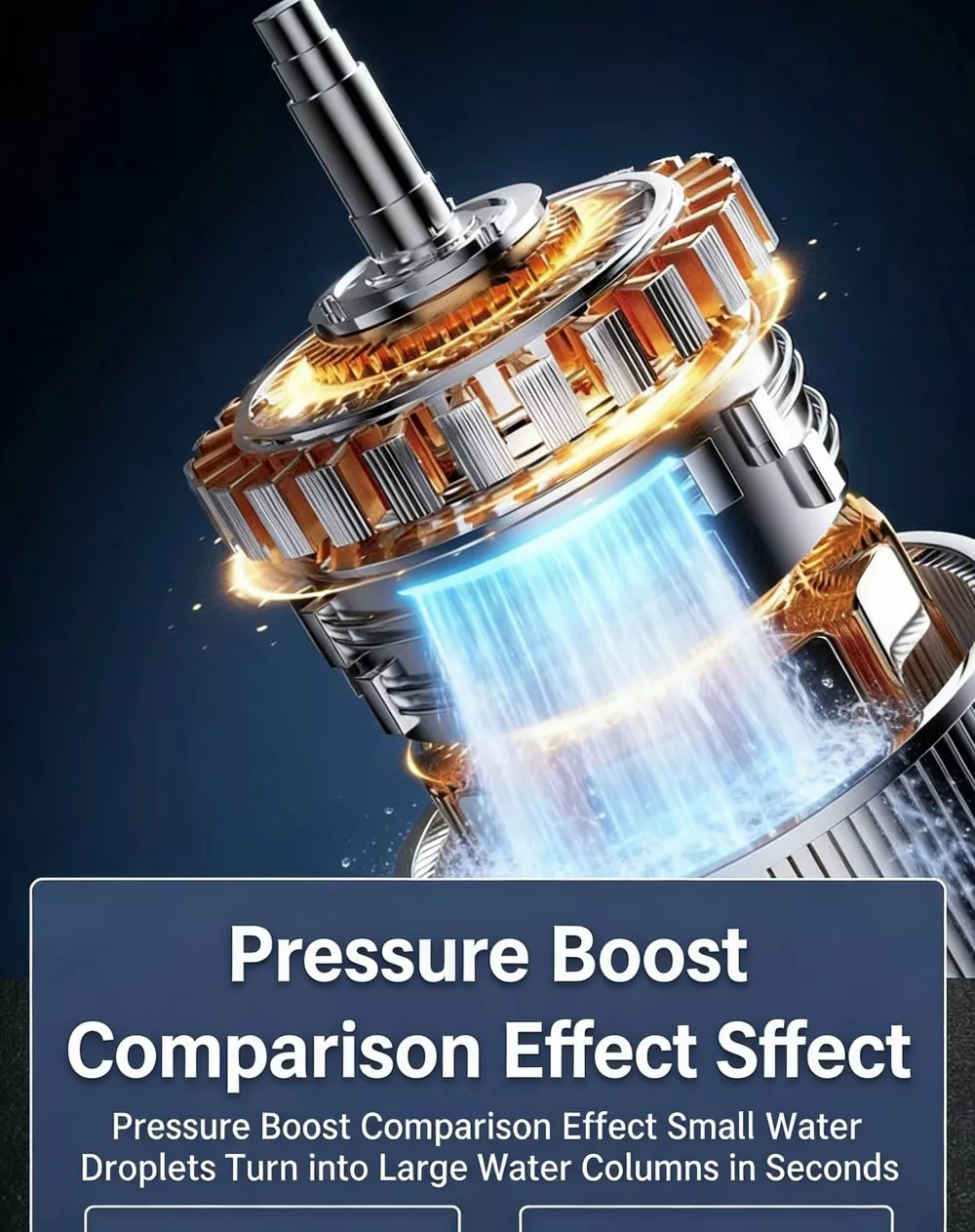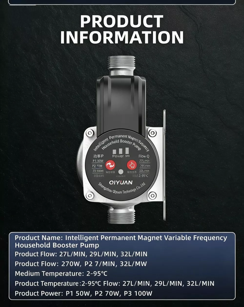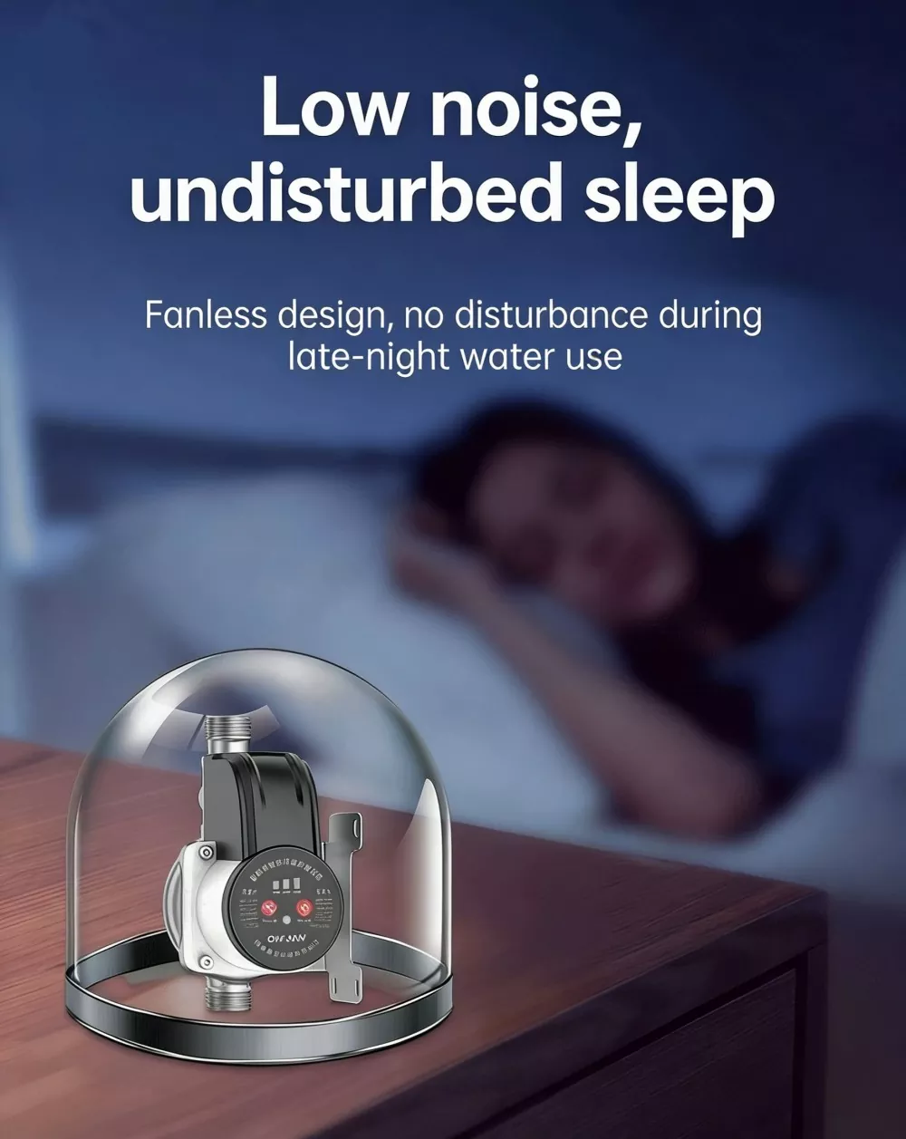 Dzięki zaawansowanemu systemowi kontroli zmiennej częstotliwości z magnesami trwałymi automatycznie dostosowuje prędkość obrotową do rzeczywistego zapotrzebowania na wodę, z dostępnymi trzema poziomami ciśnienia (niskie/średnie/wysokie ciśnienie). Zapewnia komfortowe zaopatrzenie w wodę, zapewniając jednocześnie wyjątkową efektywność energetyczną, oszczędzając ponad 30% więcej energii niż tradycyjne pompy wspomagające.
