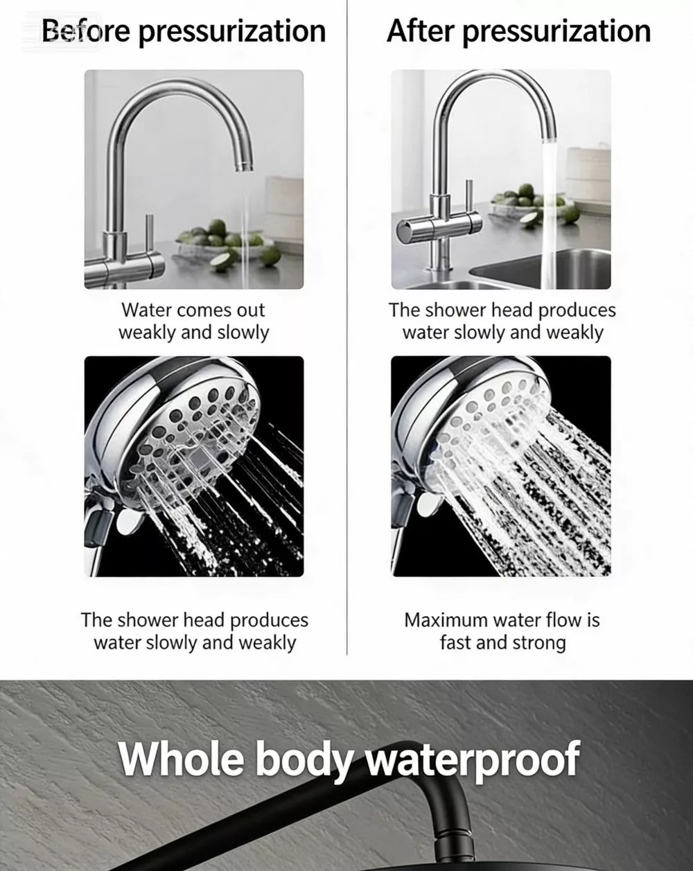 Zwiększanie ciśnienia w głowicy prysznicowej: Popraw jakość kąpieli pod prysznicem, połóż kres słabemu przepływowi wody i nagłym zmianom temperatury zimnej i ciepłej wody.