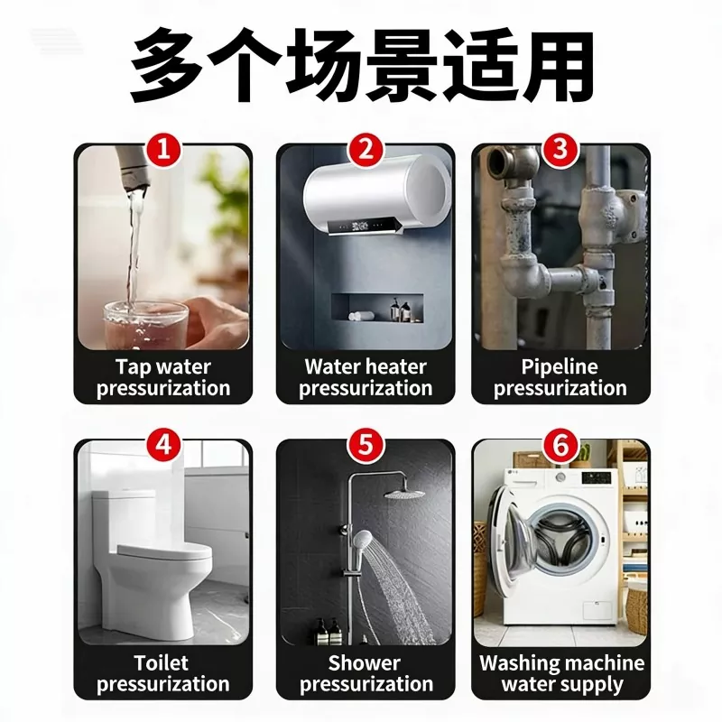 Tę małą, inteligentną pompę wspomagającą można w szerokim zakresie dostosować do zróżnicowanych scenariuszy zapotrzebowania gospodarstw domowych na wodę, dokładnie dostosowując się do potrzeb różnych urządzeń wodnych, a jej podstawowe scenariusze zastosowań obejmują: