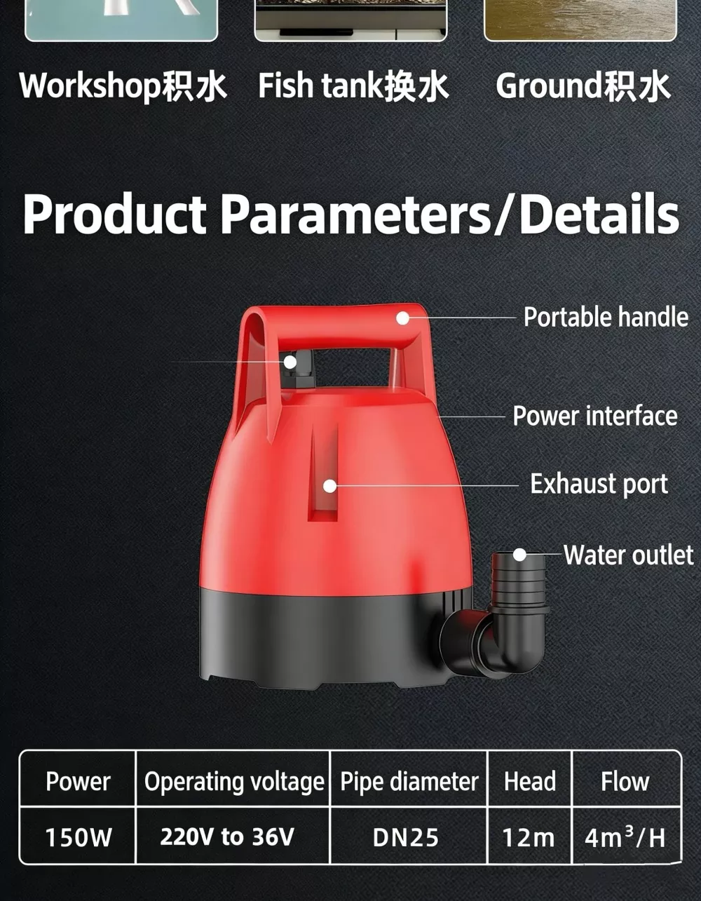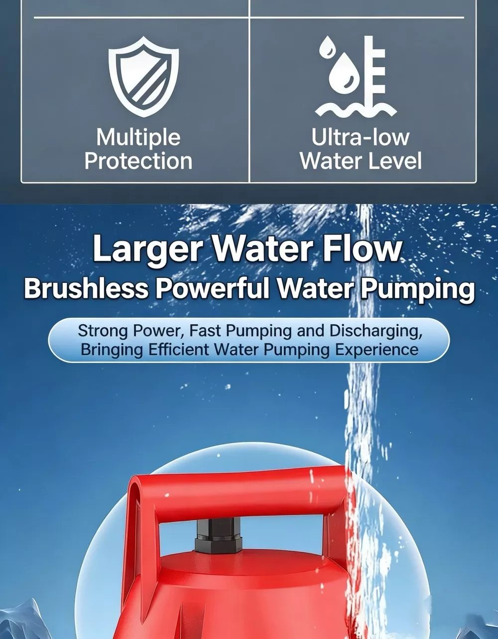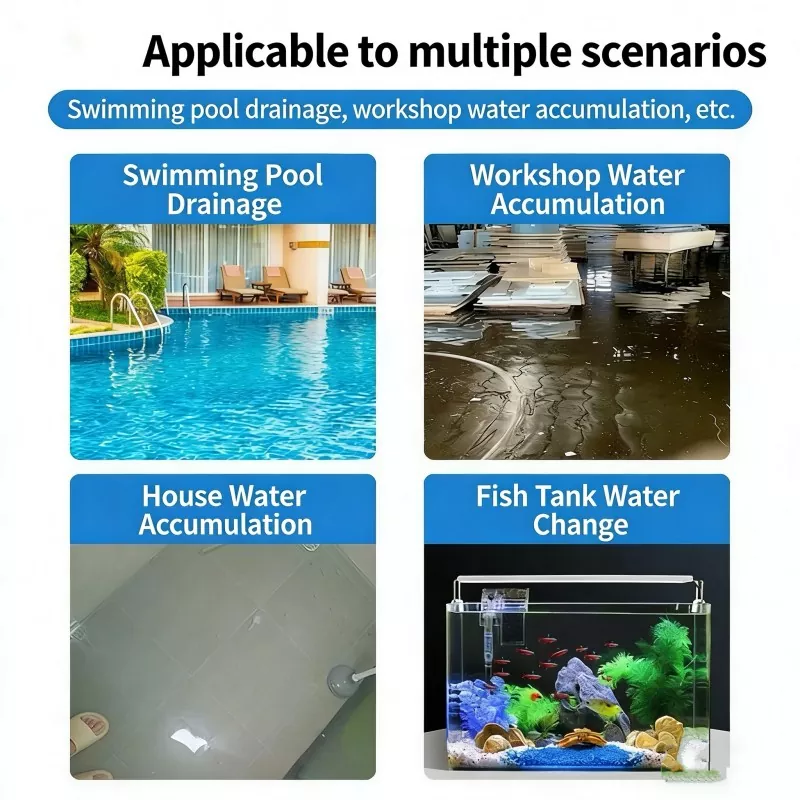 Pompa zanurzeniowa to kompaktowe, wysokowydajne rozwiązanie odwadniające przeznaczone zarówno do użytku domowego, jak i do użytku w małych obiektach komercyjnych. Dzięki wyjątkowo niskiemu poziomowi ssania, poboru wody w zakresie 360°, automatycznej ochronie i cichej pracy zapewnia stabilne, bezpieczne i wygodne usuwanie wody w wielu scenariuszach. Ta niezawodna pompa głębinowa skutecznie rozwiązuje problemy związane z nagromadzoną wodą, czyszczeniem zbiornika i odprowadzaniem wody stojącej, dzięki czemu jest praktycznym wyborem do codziennego użytku.